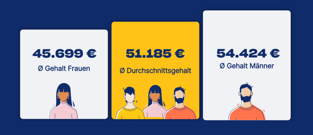 Jedes Jahr an Berufserfahrung bedeutet also mehr Gehalt. Ein beruflicher Aufstieg hinsichtlich mehr Verantwortung bringt jedoch nochmal deutlich schneller mehr. Arbeitnehmer:innen mit Personalverantwortung verdienen im Schnitt 61.198 Euro brutto pro Jahr. Männliche Führungskräfte allerdings freuen sich über 64.654 Euro auf ihrem Gehaltszettel, ihre weiblichen Kolleginnen dagegen müssen sich im Schnitt mit nur 52.979 Euro zufriedengeben, also 18 Prozent weniger.